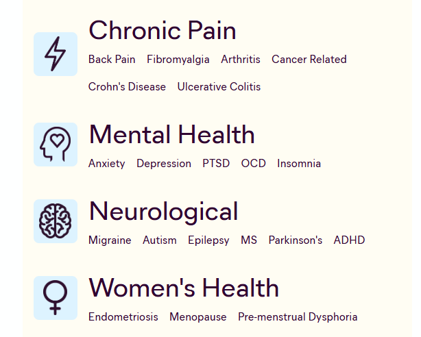 Medical cannabis can be prescribed for more than 50 conditions - usually ones that are chronic or treatment-resistant. Below is a snapshot of just some these: